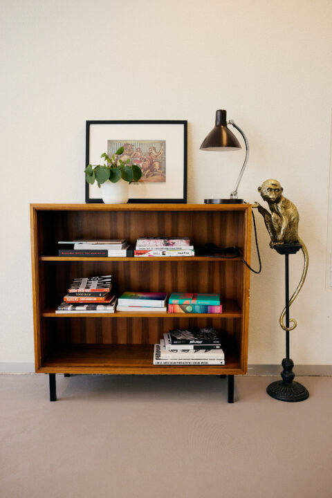 “Rauw, licht en lekker open. We hebben het gestript: tapijt eruit, vloer geverfd, zodat het voelt als een creatieve studio. Qua inrichting? Een mix van vintage vondsten en moderne basics. Geen showroom, maar wel sfeer.”